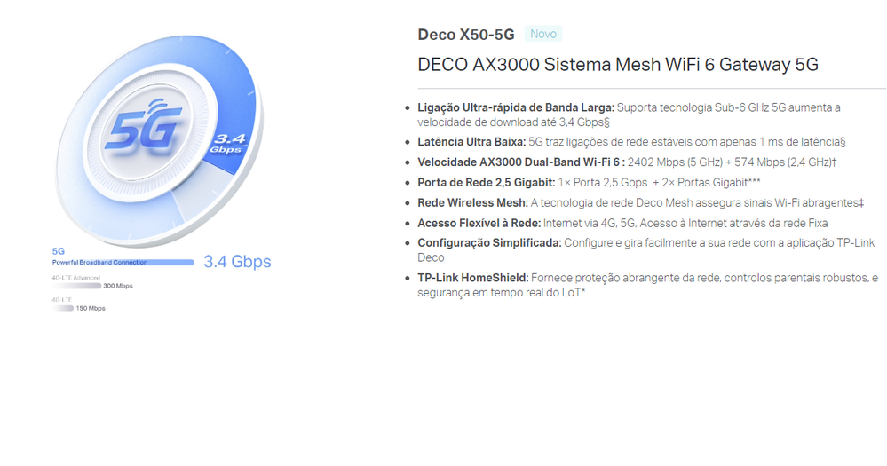 Este cartão é para ser aplicado num router da TP-Link modelo DECO X50-5g que, pelo nome indica é um Router 5G LTE.
