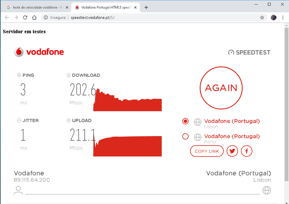 A Vodafone apenas garante a velocidade contratada quando a ligação é feita por cabo. Por Wi-Fi, existem vários fatores que podem ter influência na qualidade e dispersão do sinal.