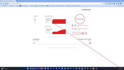 Podem verificar aqui os testes efetuados hoje de manhã, exclusivamente portátil ligado por cabo ao router e no vosso SpeedTest tal como pedem na linha técnica:Teste1