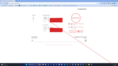 Contactei o suporte técnico pelo 16913 no mesmo dia e pediram-me para fazer os mesmos testes e ainda teste de velocidade no seguinte endereço https://speedtest.vodafone.pt/5/ obtendo valores que não cumpriam o mínimo que teria de ser garantido, muita dificuldade a chegar aos 500mbps quer por cabo(CAT6) quer por WIFI, por vezes não conseguia chegar aos 140mbps, possuindo eu equipamentos de última geração com as mais recentes normas.