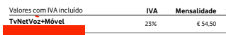 Não é no entanto possível discriminar o valor do primeiro número móvel no pacote tv net voz + móvel.