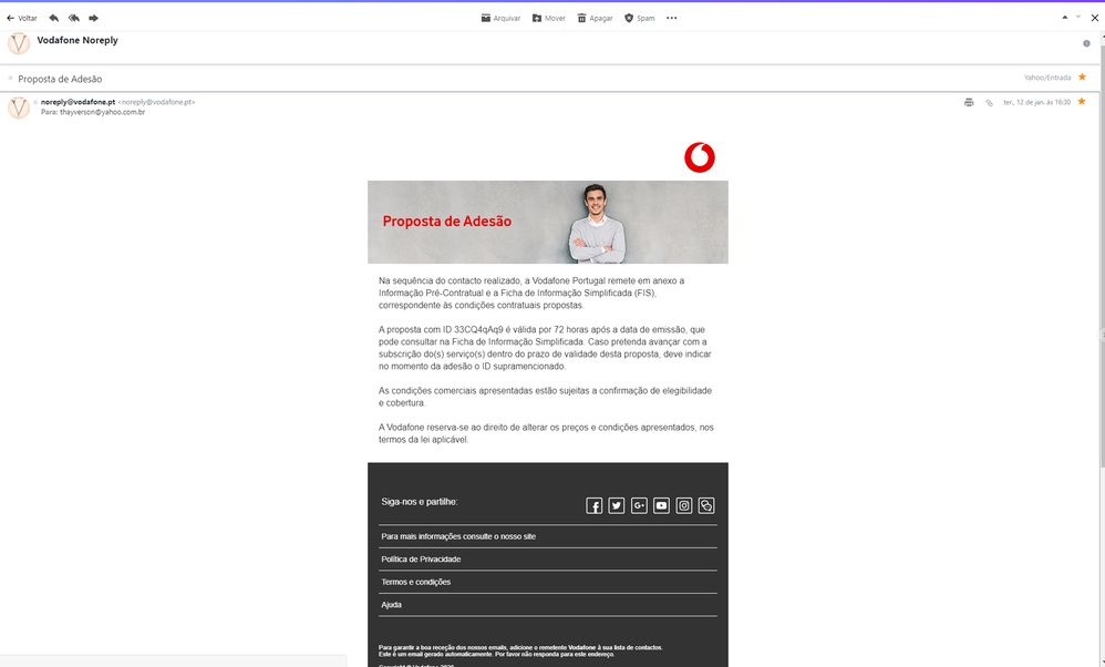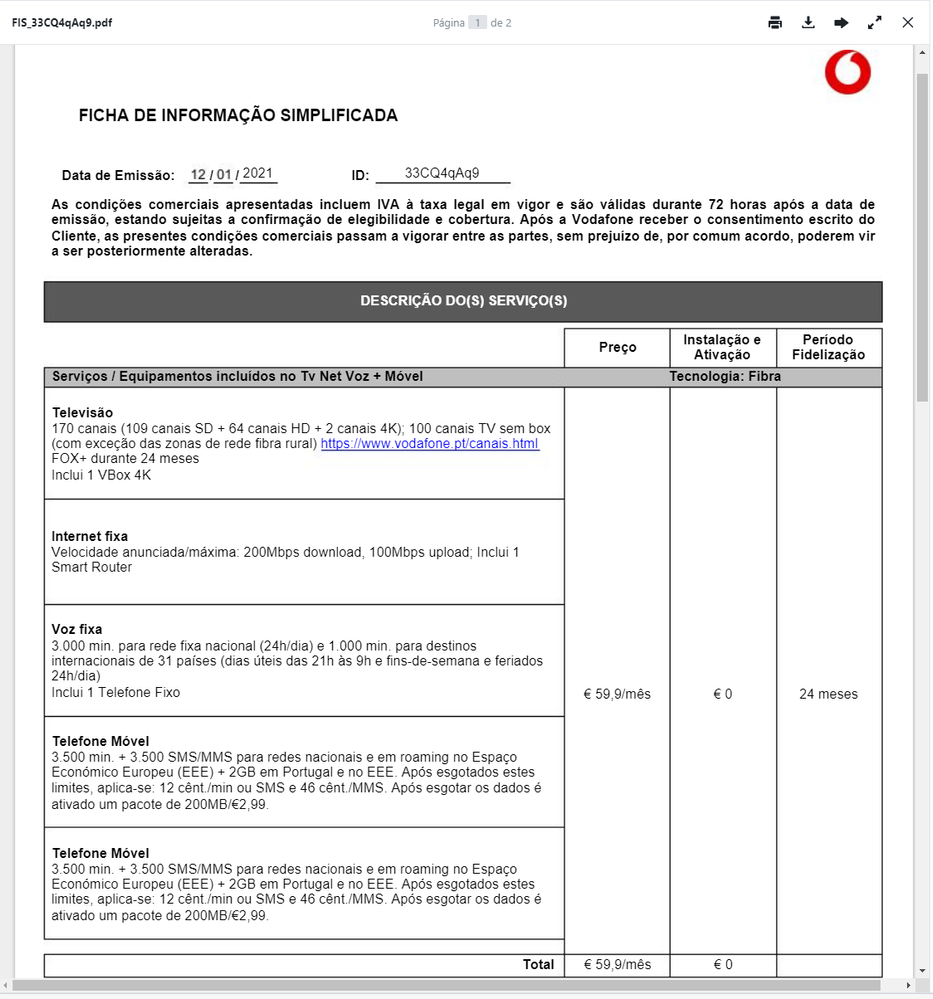 Bom dia, no dia 12/01 fiz a adesão dessa pacote pela área de Marketing da Vodafone, me ofereceram alguns recursos e condições por ta mudando de operadora e marquei a instalação do serviço para o dia 29/01!
