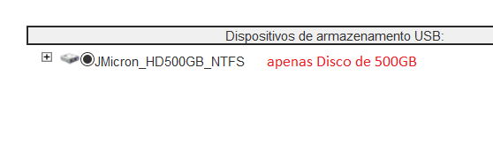 Sim ele está em NTFS e são dois discos um de 1TB e um de 500GB ligados em uma Dock, acredito que seja um problema na interface que não deixa selecionar o outro disco, pois ele detecta os dois como estava na foto que postei no inicio do tópico.